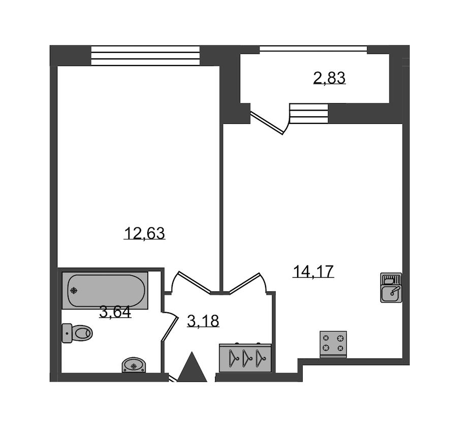 • Площадь кухни14,17 м2