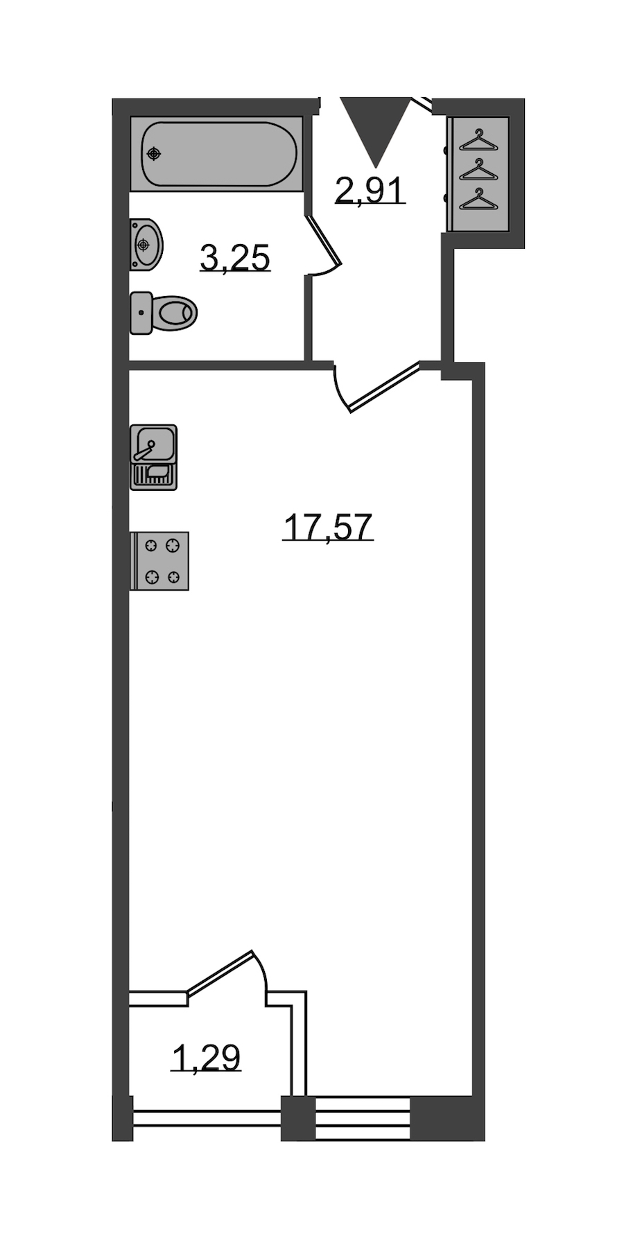 Квартира-студия на 1-ом этаже 23,9 кв.м