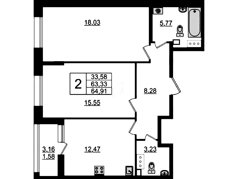 • Площадь64,91 м2