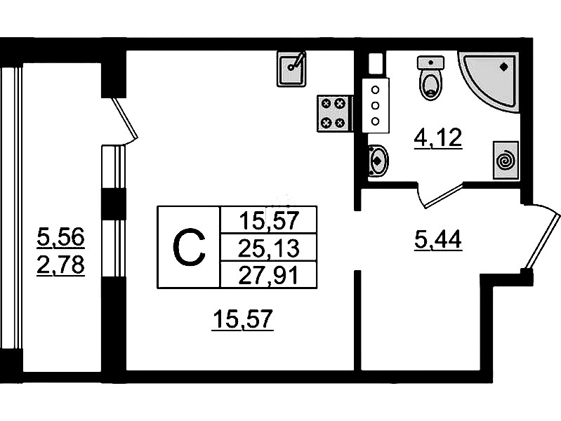 - Площадь27,91 м2