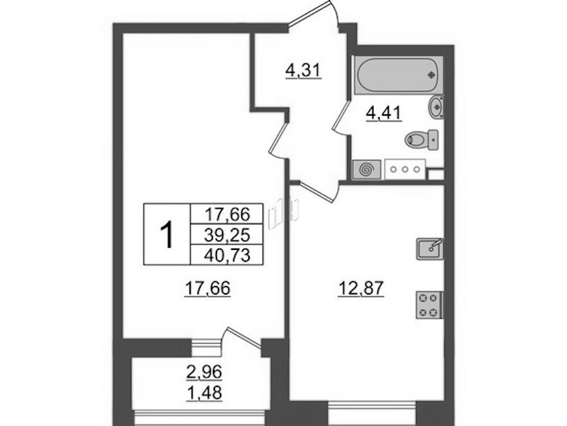 - Площадь40,73 м2