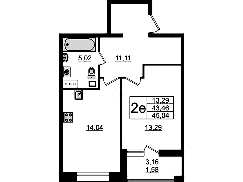• Площадь45,04 м2