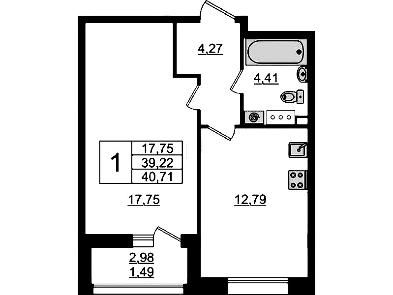 • Площадь40,71 м2