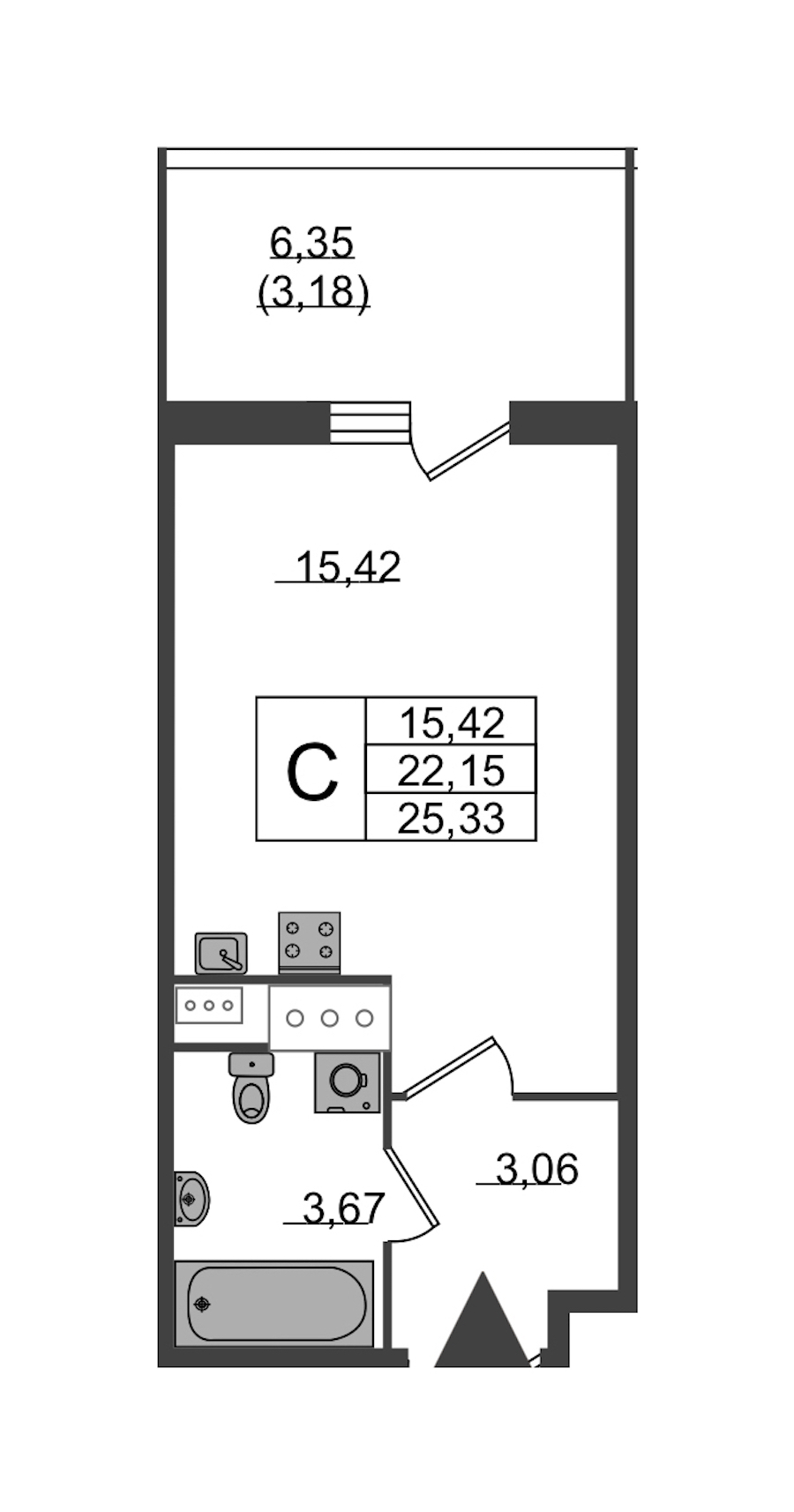 Квартира-студия на 11-ом этаже 25,33 кв.м