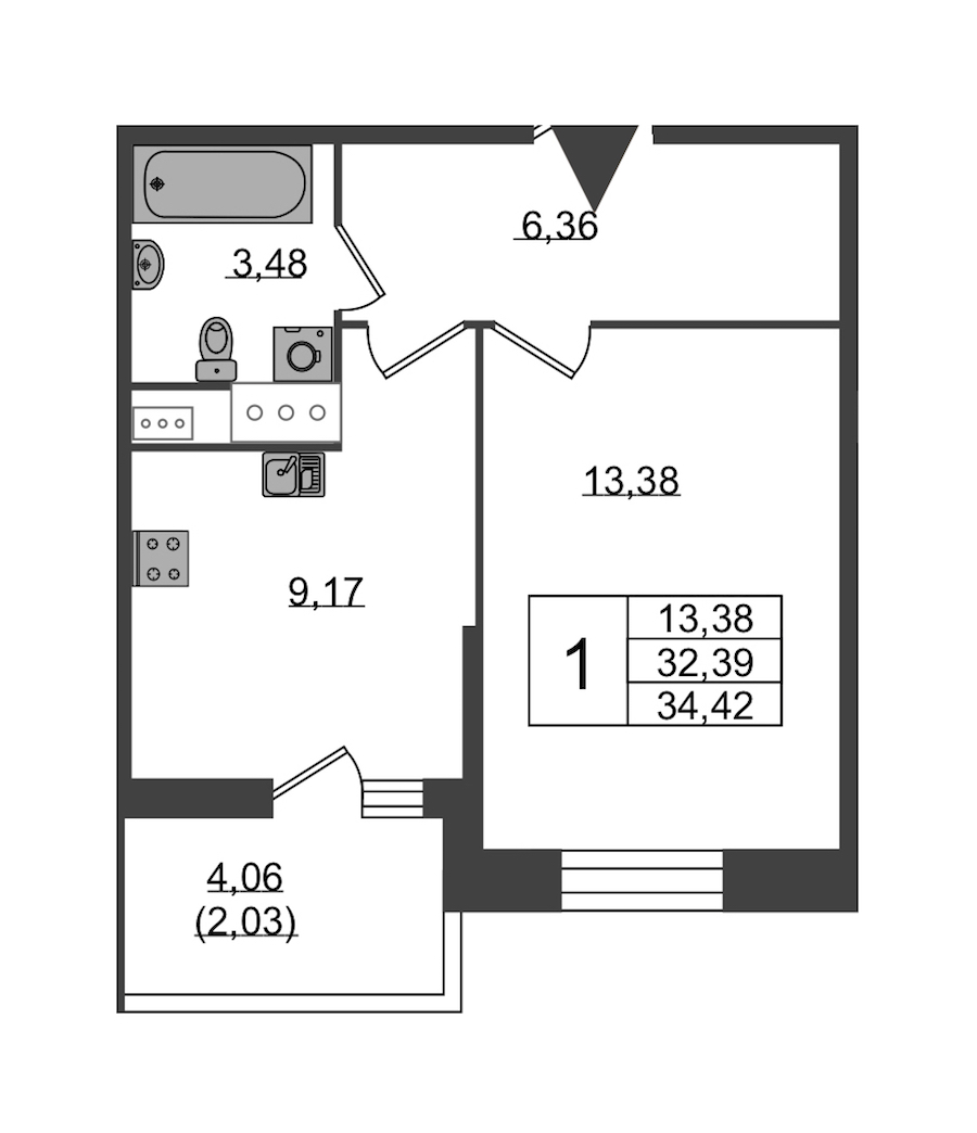 • Площадь34,42 м2