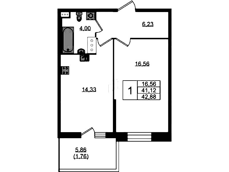 • Площадь кухни14,33 м2