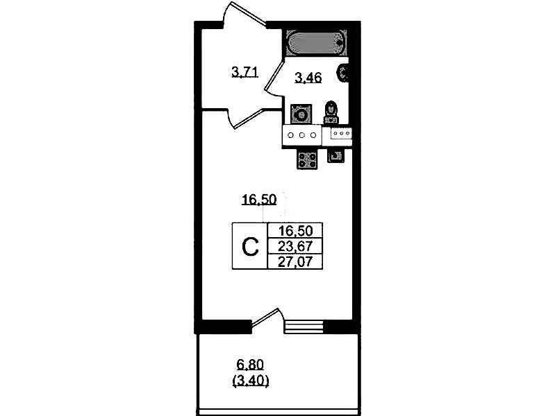 - Высота потолка2,7 м