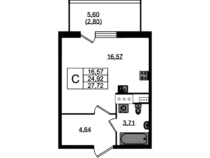 - Площадь26,4 м2