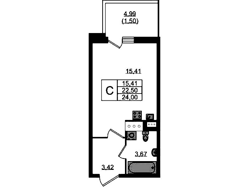 Квартира-студия на 8-ом этаже 23,7 кв.м