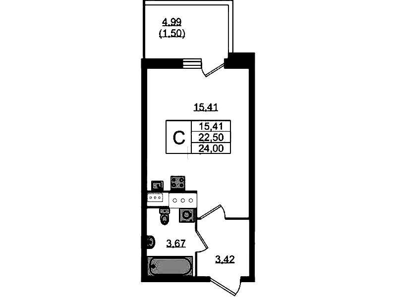 Квартира-студия на 9-ом этаже 23,6 кв.м