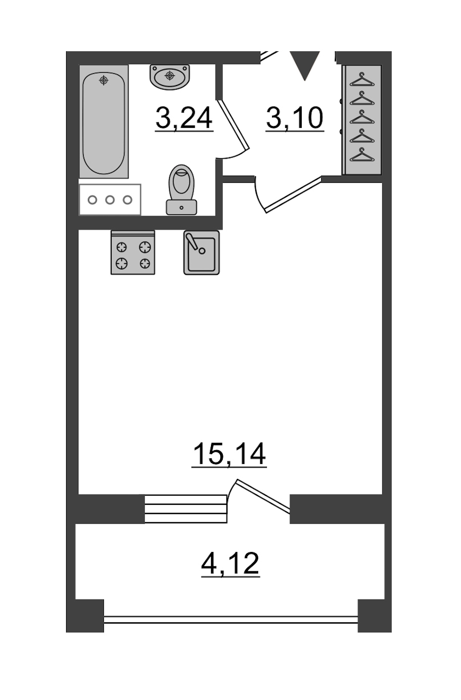 Квартира-студия на 8-ом этаже 24,3 кв.м