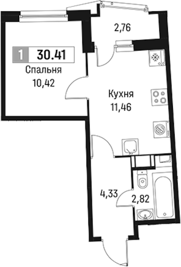 - Площадь30,41 м2