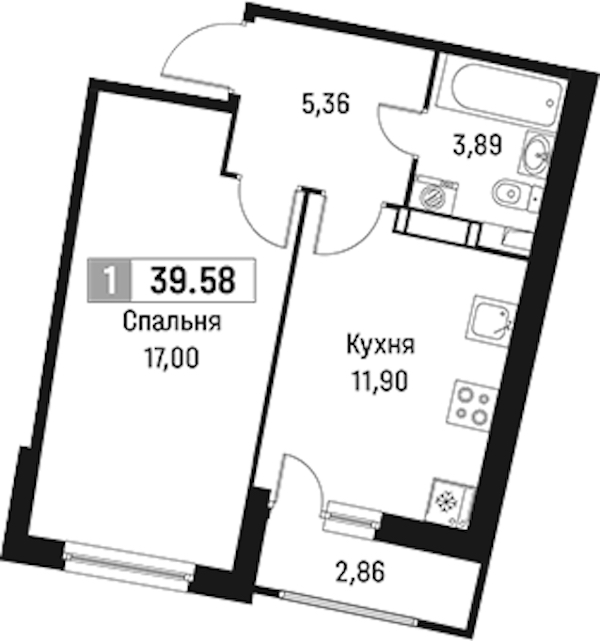 - Площадь39,58 м2