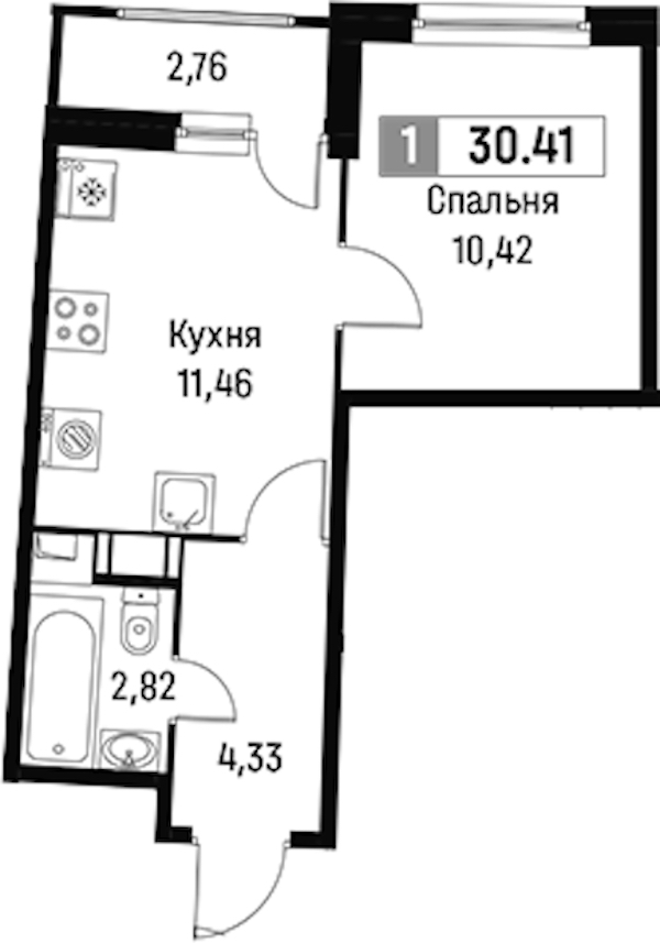 Однокомнатная квартира на 5-ом этаже 30,41 кв.м