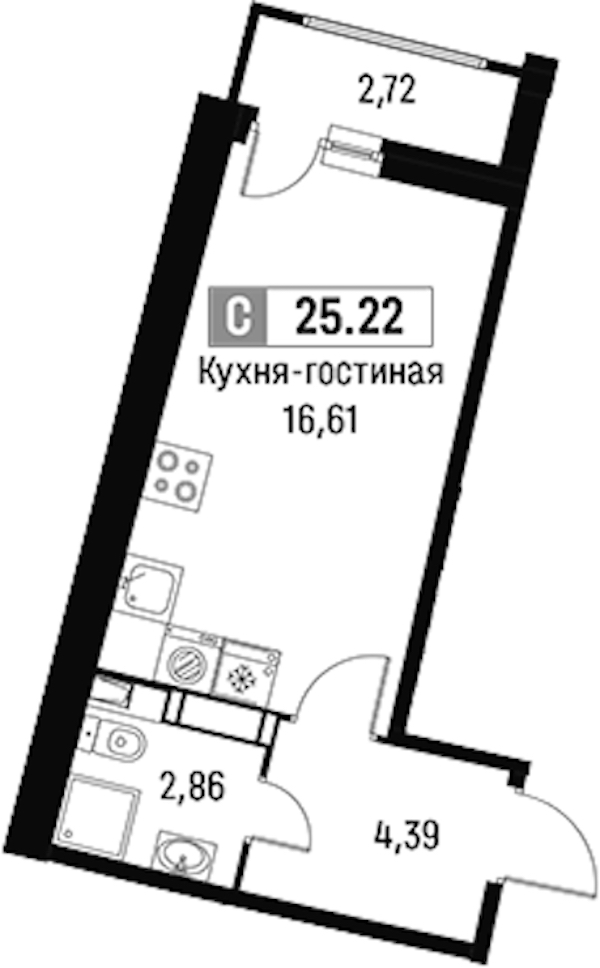- Площадь25,22 м2