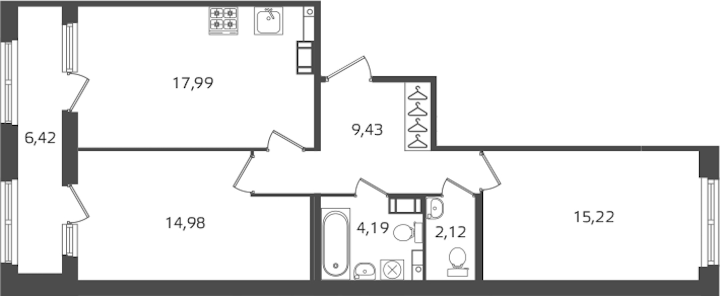 - Площадь кухни17,99 м2