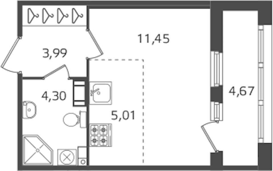 - Площадь24,75 м2