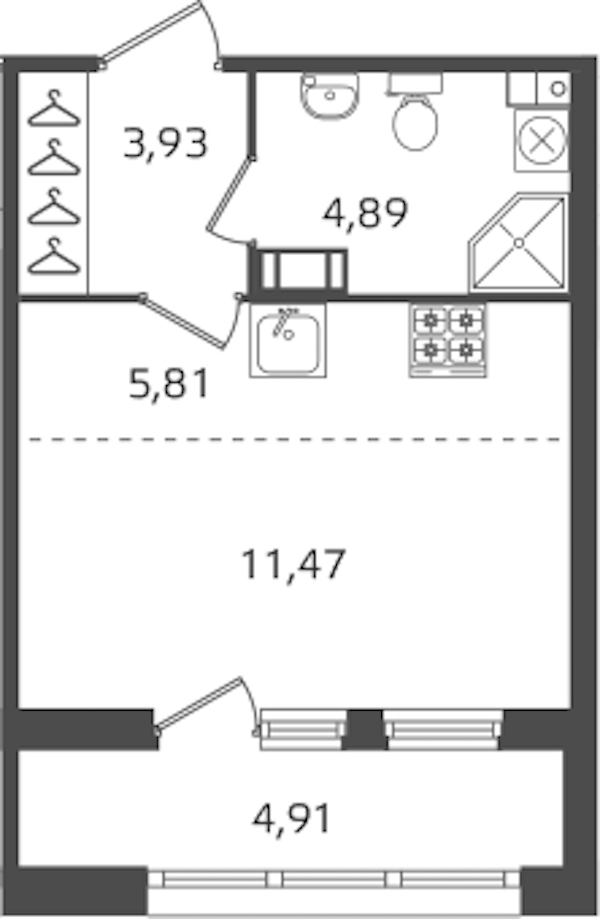 Квартира-студия на 9-ом этаже 26,1 кв.м
