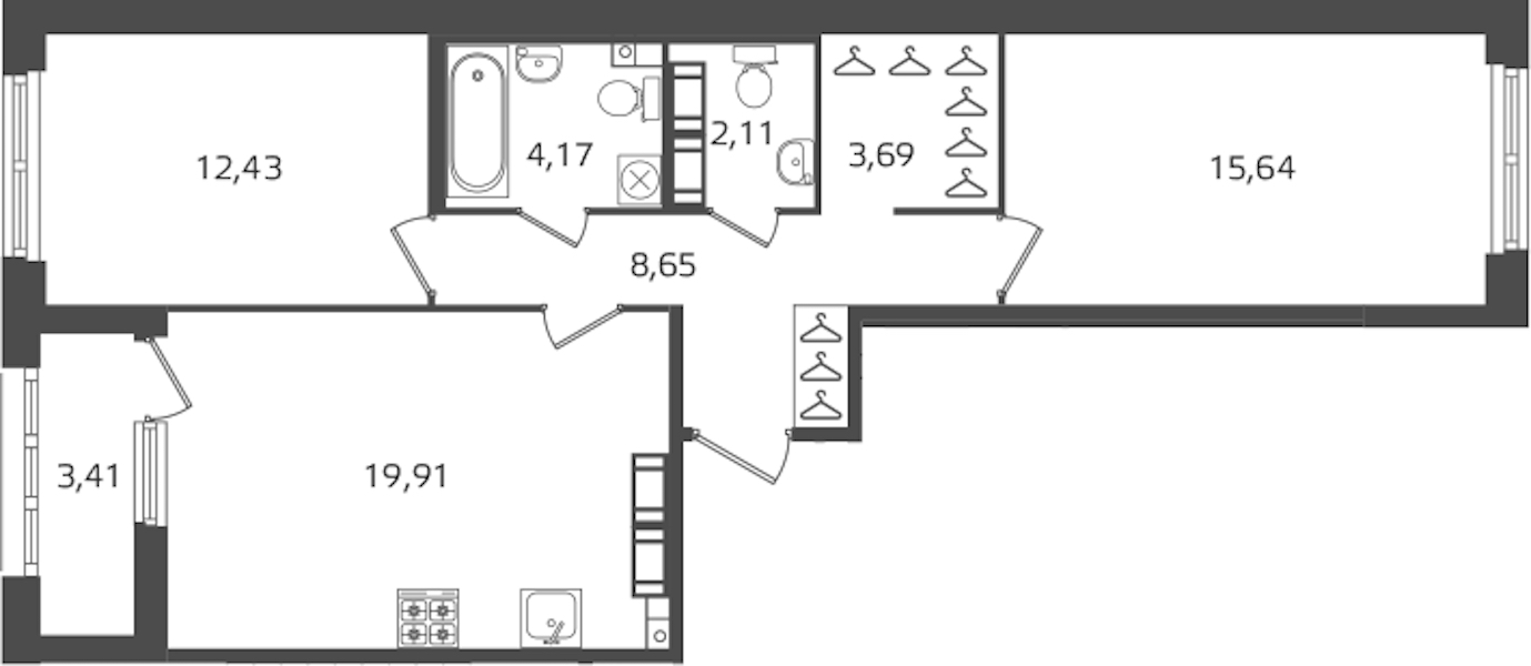 Двухкомнатная квартира на 13-ом этаже 66,6 кв.м