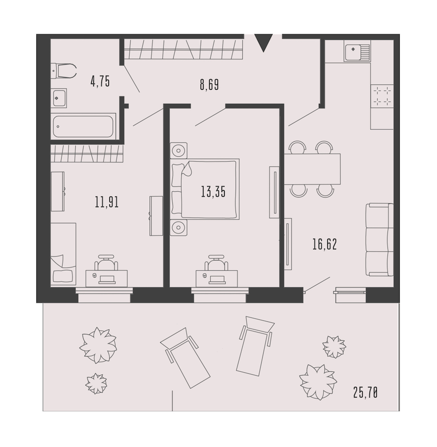 Двухкомнатная квартира на 1-ом этаже 63,03 кв.м