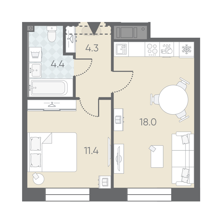 Однокомнатная квартира на 4-ом этаже 38,1 кв.м