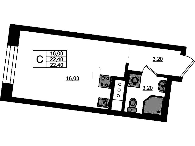 Квартира-студия на 5-ом этаже 22,4 кв.м