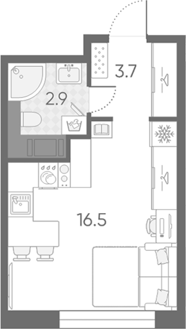 Квартира-студия на 7-ом этаже 23,1 кв.м