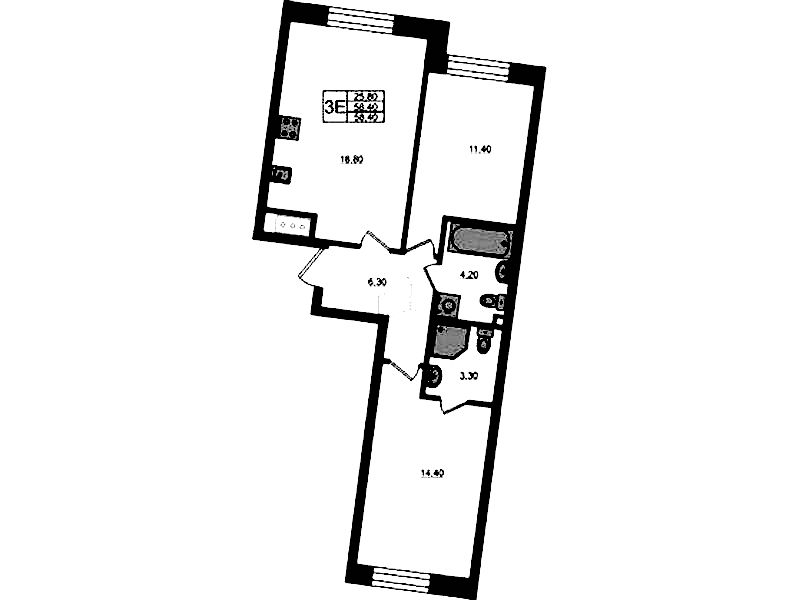 - Площадь58,4 м2