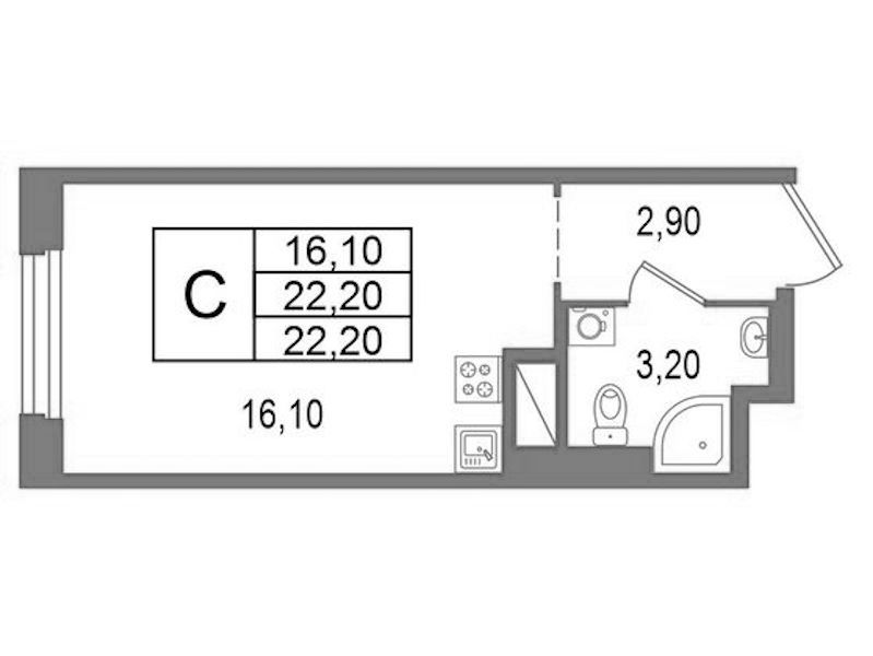 - Площадь22,2 м2