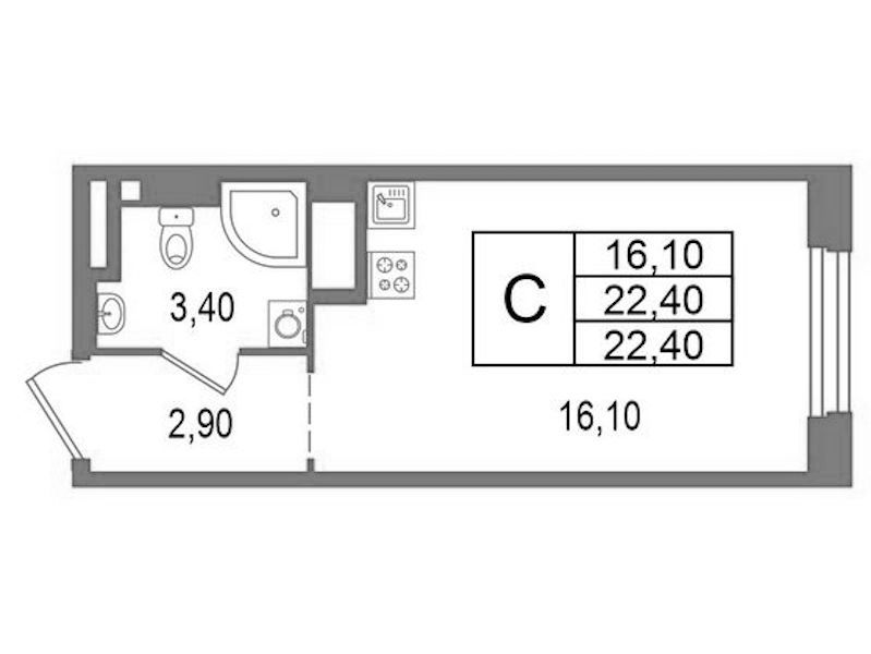 - Площадь22,4 м2