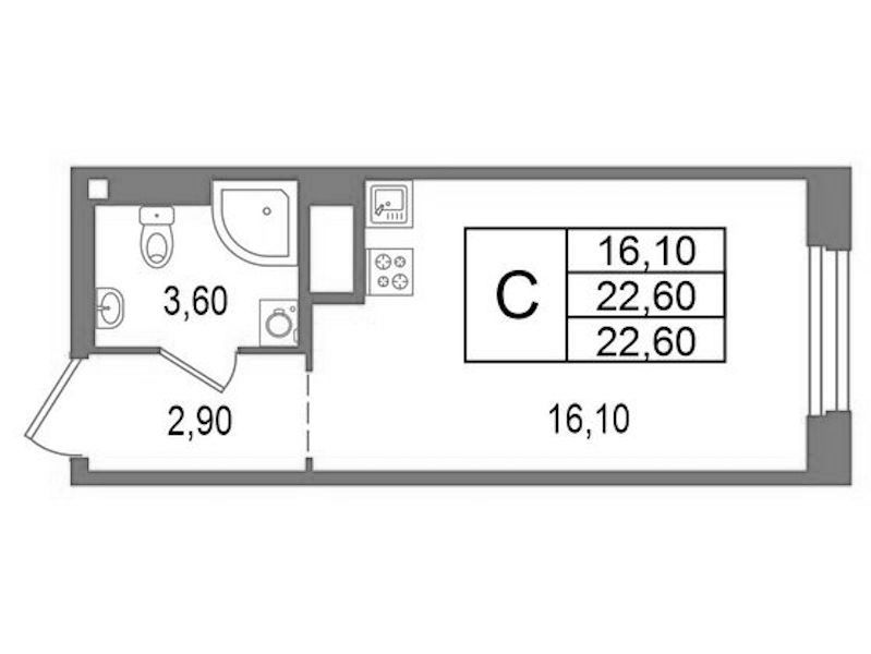 Квартира-студия на 4-ом этаже 22,6 кв.м