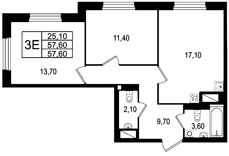 • Площадь57,6 м2