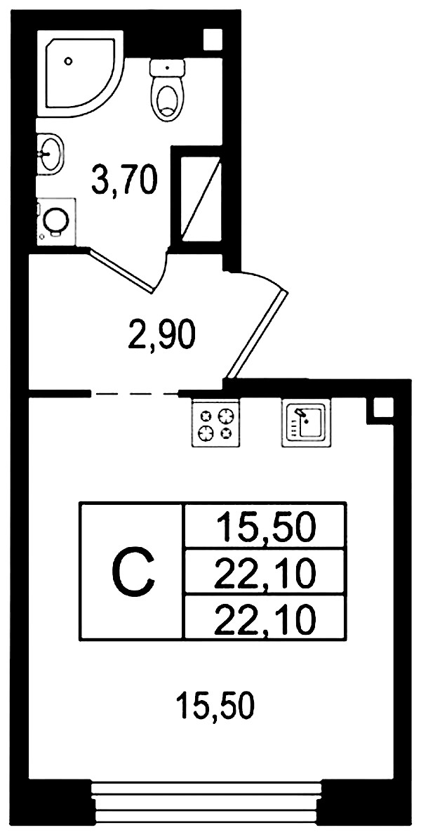 - Площадь22,1 м2