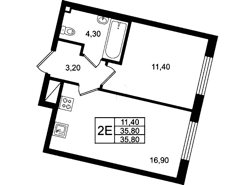 Однокомнатная квартира на 8-ом этаже 35,8 кв.м
