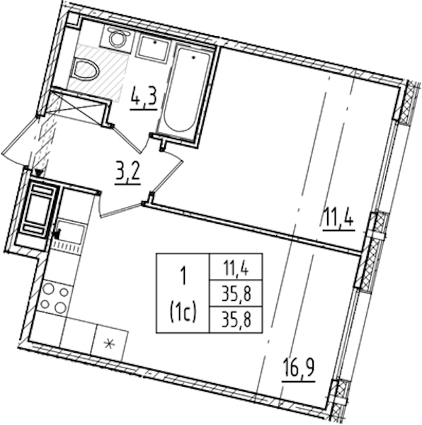 - Площадь35,8 м2