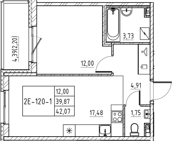 • Площадь42,07 м2