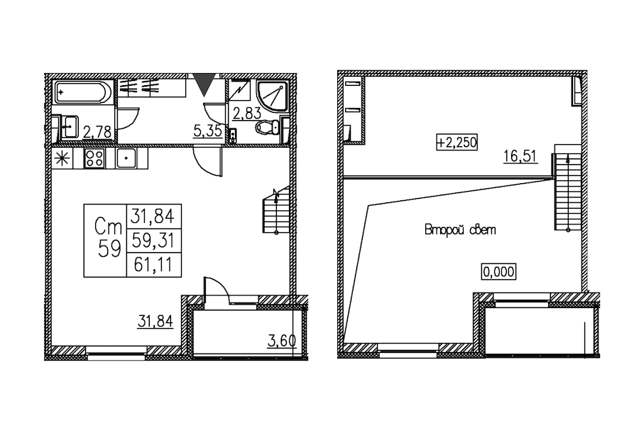 • Площадь61,11 м2