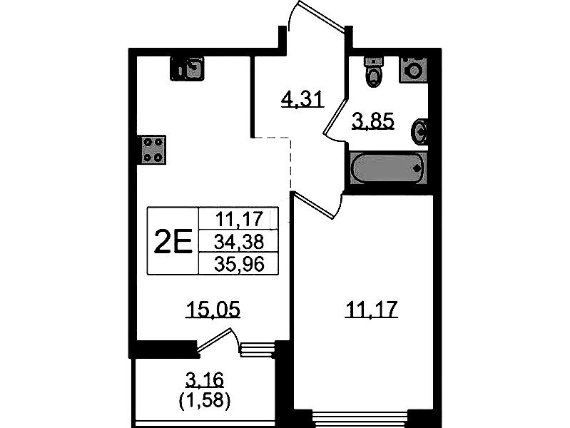 • Площадь35,96 м2
