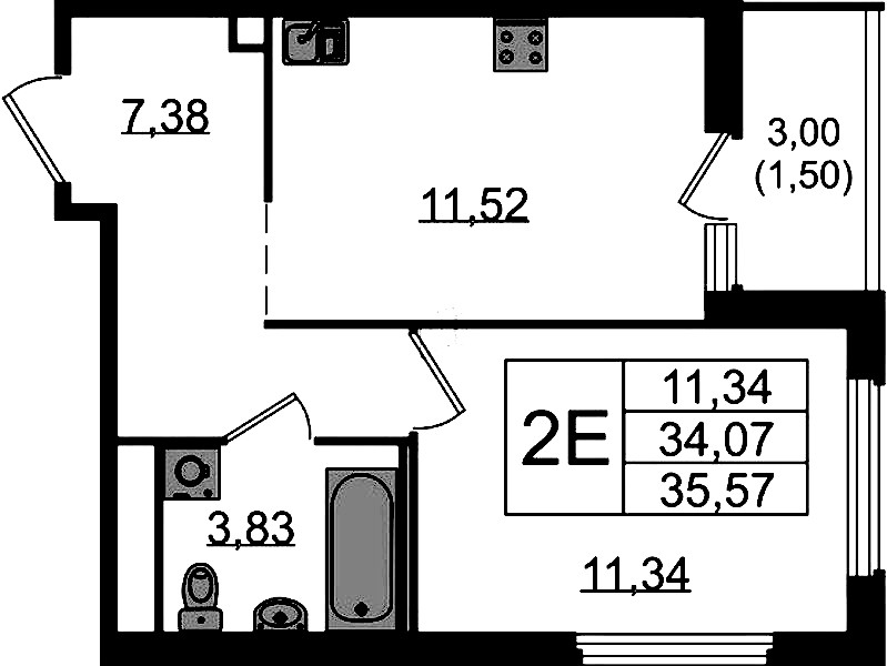 • Площадь35,57 м2