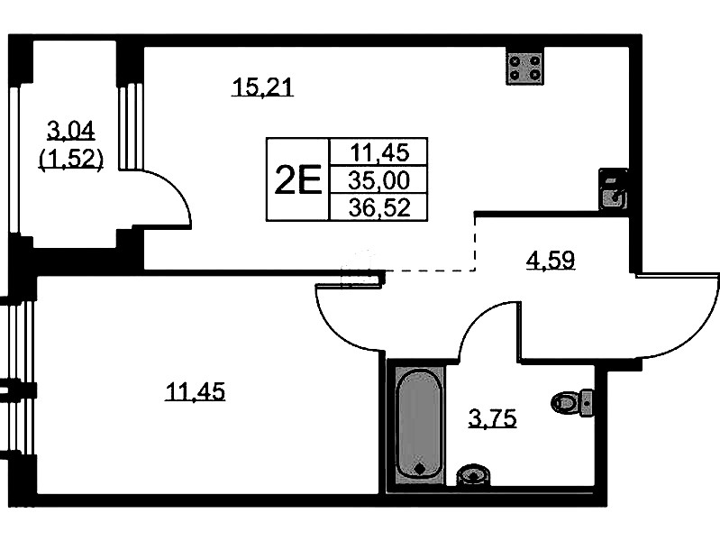 Однокомнатная квартира на 10-ом этаже 36,52 кв.м