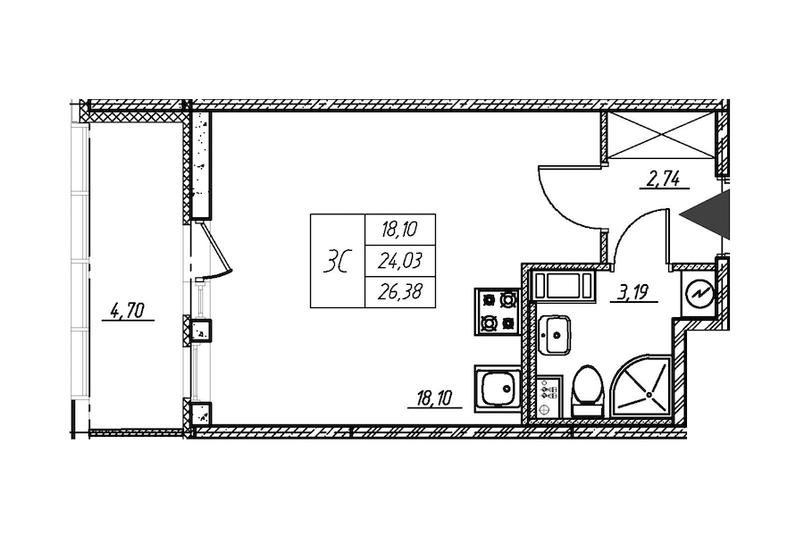- Количество комнатСтудия