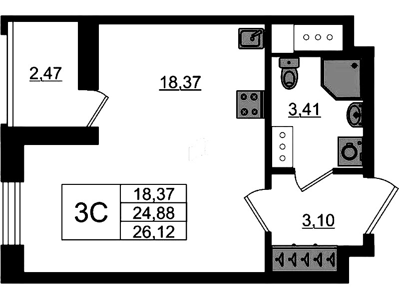 Квартира-студия на 22-ом этаже 24,88 кв.м