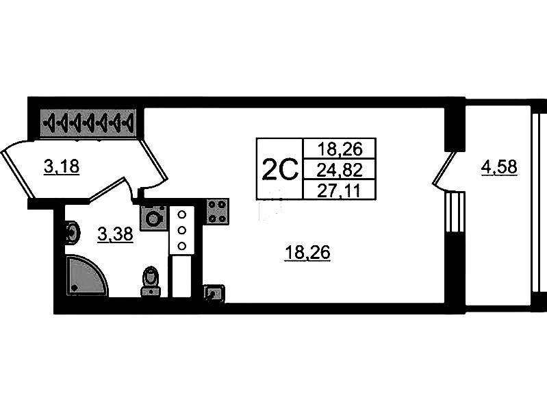 - Площадь24,82 м2