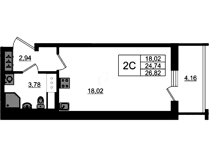• Площадь24,74 м2