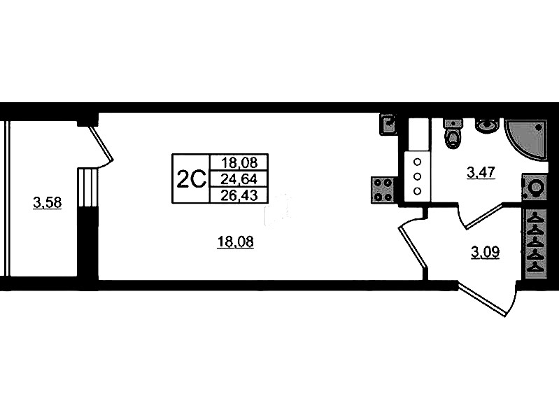 Квартира-студия на 8-ом этаже 24,64 кв.м