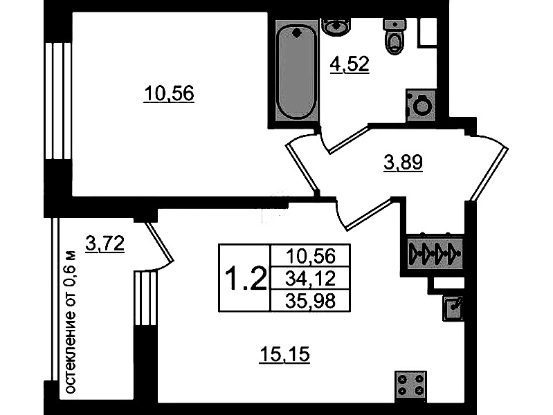- Площадь34,12 м2