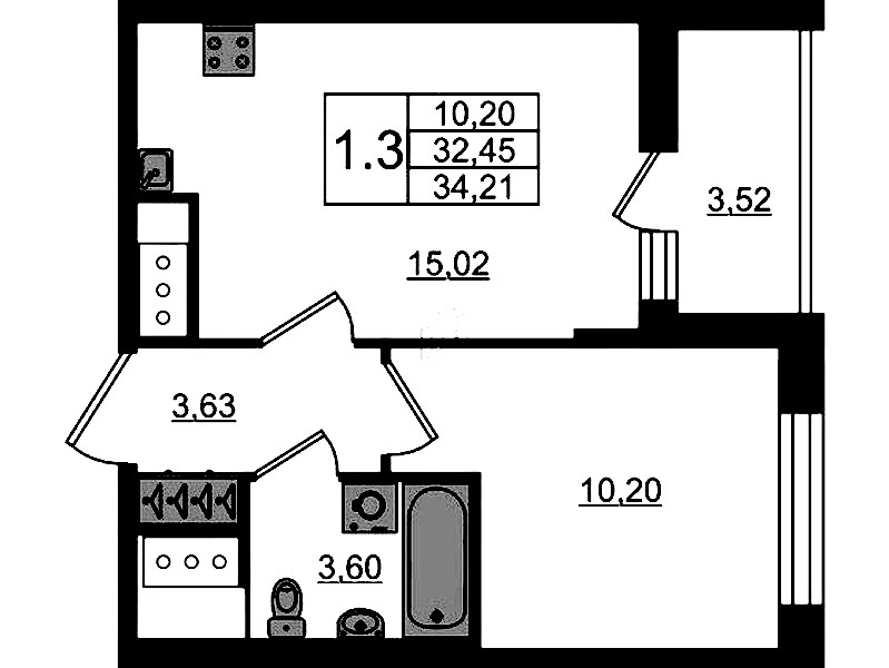 - Площадь32,45 м2