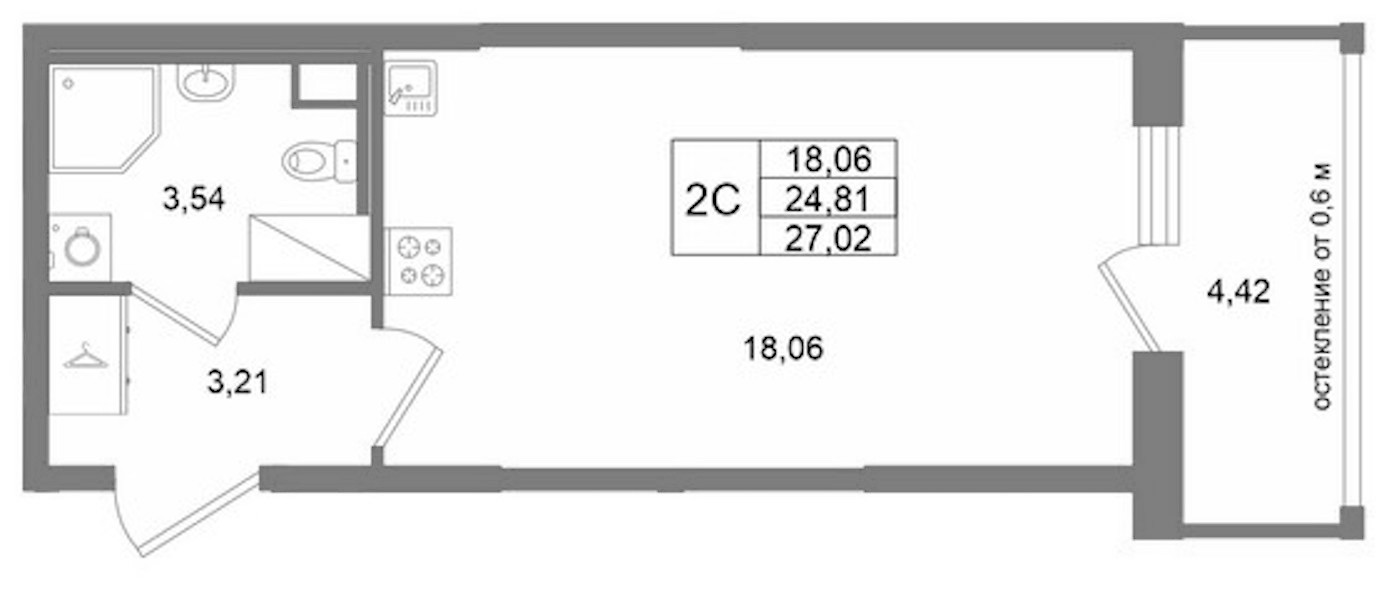 Квартира-студия на 3-ем этаже 24,81 кв.м