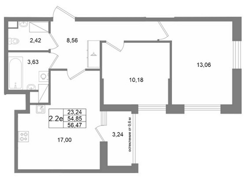 - Площадь54,85 м2