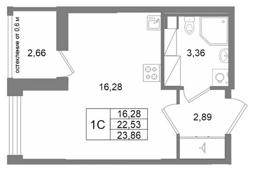 • Площадь22,53 м2
